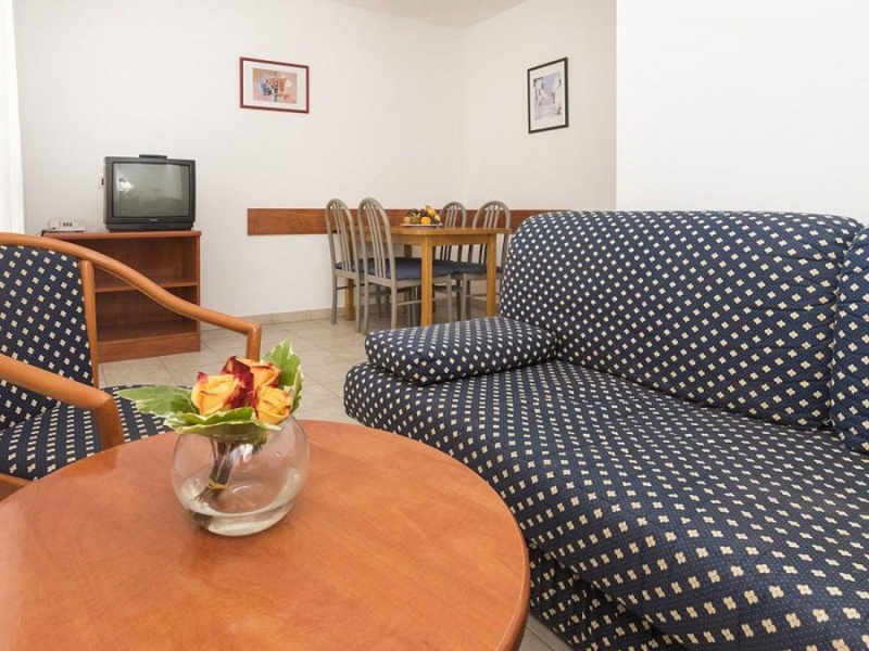 Apartmán je vybaven dvoulůžkovou ložnicí a rozkládací pohovkou pro 1 osobu v obývacím pokoji, kuchyňským koutem, vlastním sociálním zařízením, SAT/TV, telefonem, malým kávovarem a balkonem nebo terasou.