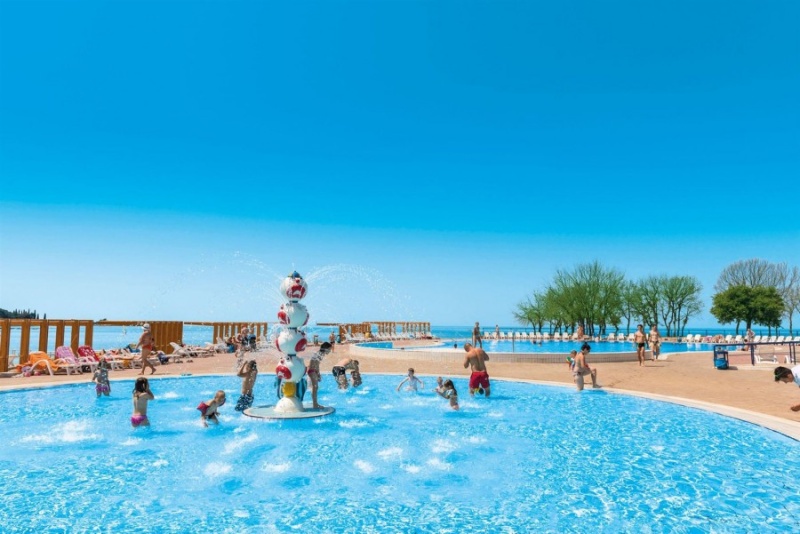 v komplexu se nachází venkovní bazén se sladkou vodou pro děti i dospělé. Zúčastnit se můžete animačních programů pro dospělé a mladistvé, sportovních programů (jóga, zumba, aqua aerobic, volejbal, fotbal) a sportovních turnajů (volejbal, tenis). Pro děti od 5 do 12 let je v komplexu miniklub. K dispozici je také whirlpool, fitness, solárium, sauna, masáže, wellness, sportovní hřiště (pronájem sportovních hřišť a zapůjčení vybavení za poplatek), plážový volejbal, fotbal, tenis, stolní tenis, minigolf, paintball, potápění a vodní sporty na pláži, možnost projížďky na koních a půjčovna kol. Večerní program s živou hudbou, taneční vystoupení. Umag nabízí také široký výběr výletů do okolí.